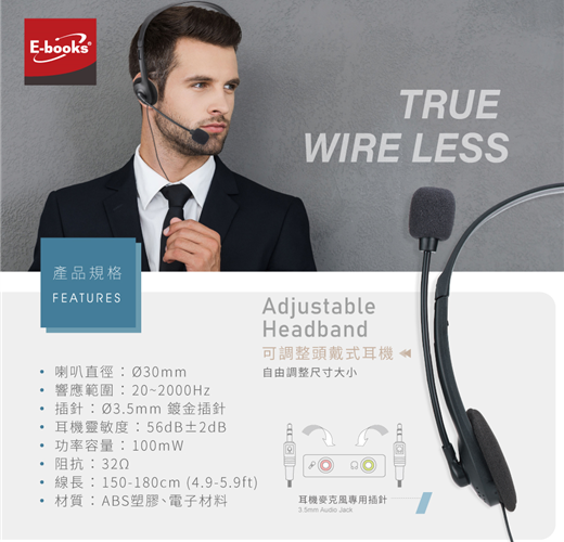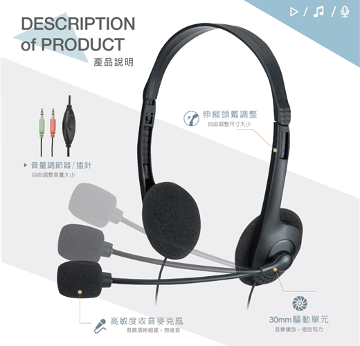 .頭戴可自由調整,能與耳部服貼吻合