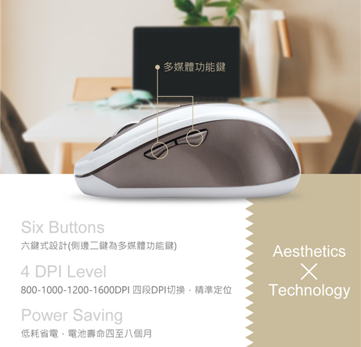 .六鍵式設計(側邊二鍵為多媒體功能鍵)。