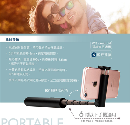 .採用五段拉桿鋁材設計,最短可在190mm拍照,最長610mm超遠延伸距離讓你發現遠處的美。