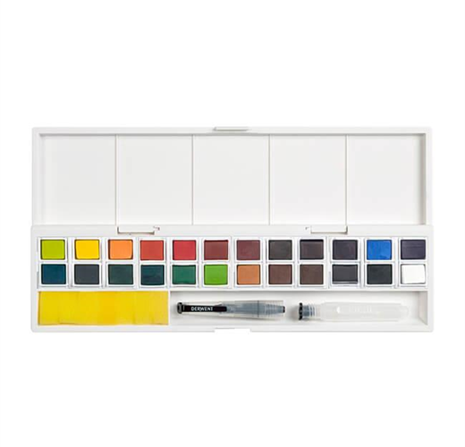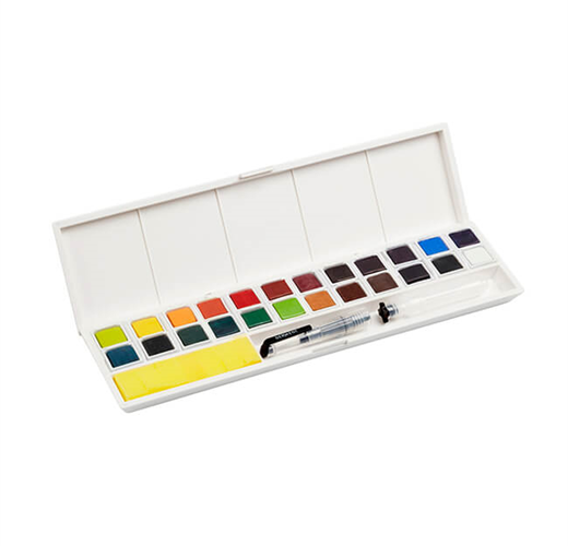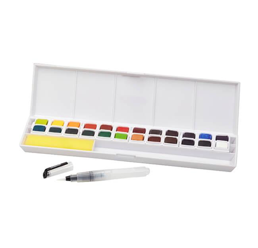 ˙內含高度耐光的水墨色塊x24、迷你水筆x1、海綿x1、混合調色板