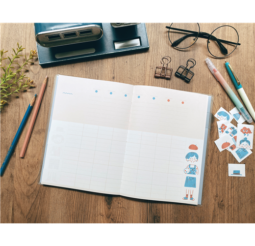 在Everyday Project 每日專案誌的內頁裡,週計畫和專案欄同步顯示,大事小事、公事私事一目了然。專案欄有專利可撕設計,可跨頁追蹤專案/學習進度,不會翻頁就忘記。全本可攤平,寫字不會手卡卡,並附贈透明墊板,讓書寫更加順暢。除了功能外,Everyday Project 每日專案誌的內頁設計還兼具娛樂性,週計畫右下方印有多款的造型穿搭,隨著專案進度被撕下後,會出現不同的組合,是不是很有趣呢!