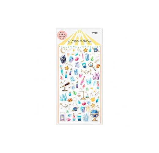 以紙膠帶素材製成的一場貼紙市集,貼上後可撕下的MIDORI水彩和紙貼紙。