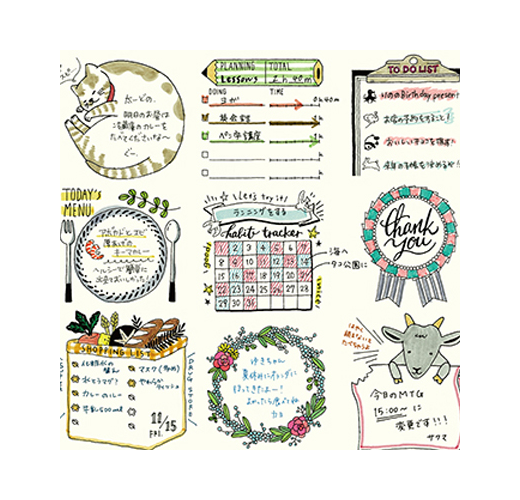可在筆記本、手帳或MEMO紙上作妝點,甚至是幫留言小卡做裝飾