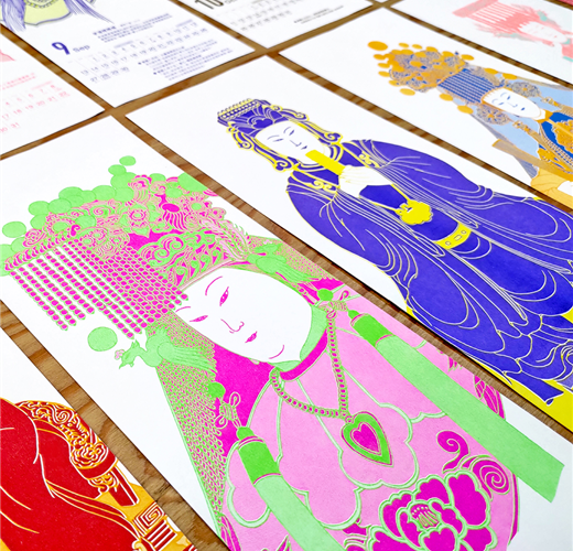 印刷使用大豆油墨,一色一色印製,因此在畫面的呈現上,會有隨機錯位的效果,顏色不完全均勻。在油墨重疊的地方,有些許混色,卻是創造每張作品獨一無二的風貌。