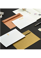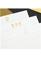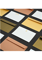 1. 全張信紙以金箔壓制、玫瑰金、古銅金、黃金色,在燈光下閃閃發光。