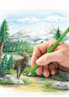 •軟性筆芯搭配乾式的繪畫技法可呈現鮮明色彩,顏色飽和度佳