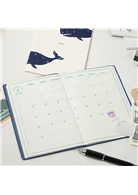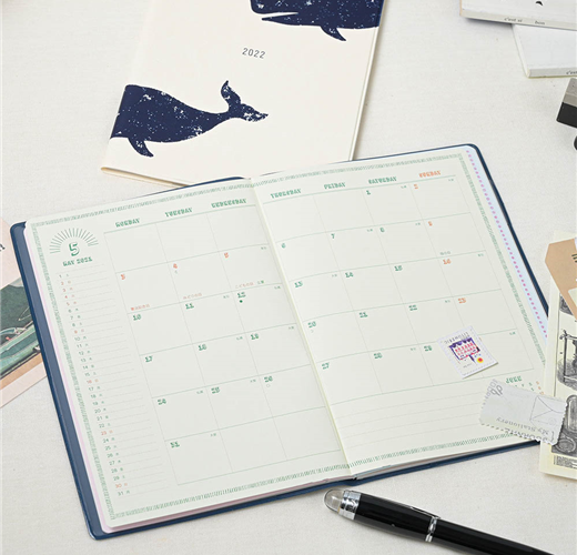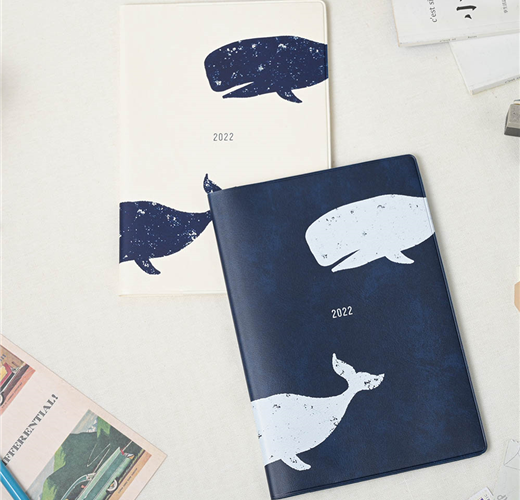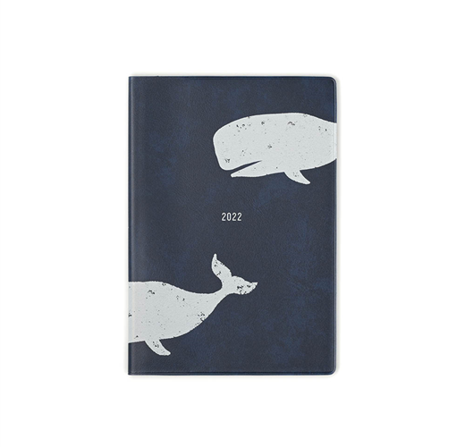 悠遊在海洋裡的抹香鯨,優雅又有存在感的封面。2022年度輕便月記事手帳,自2022年1月~2023年3月(15個月),適中B6尺寸,月記事頁與空白筆記頁。隨月份變幻的紙張顏色、裝飾線、字體,讓迎接每個月都有新鮮感。可愛又簡單的月份手帳。