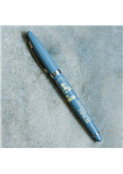 【老派旅行鋼珠筆】筆身設計融入新聞標題及廣告標語,諸如:「台灣是個寶島」、「愛神引路踏遍千山萬水」。製作上將筆身烤漆成報紙的鉛灰色,搭配米色復古圖像,十分可愛。筆芯為德國施密特品牌,品質穩定,書寫流利。
