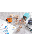 櫸木橡皮印章20顆、故事明信片套組1組、松鶴灰環保再生紙盒1組