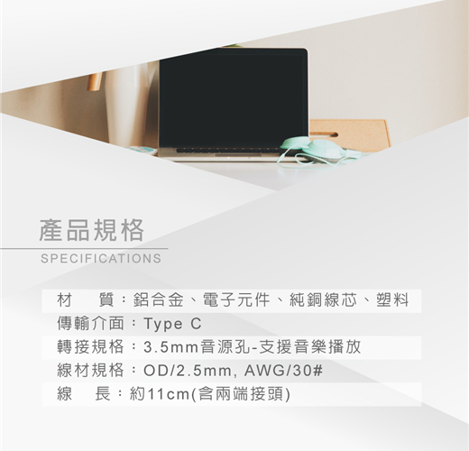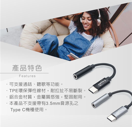 .本產品不支援帶有3.5mm音源孔之Type C機種使用。