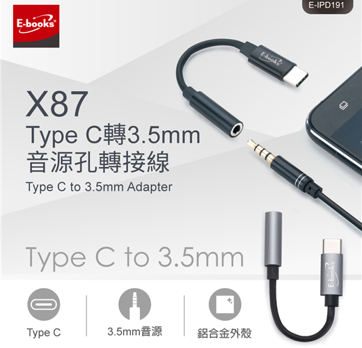 X87TypeC轉3.5mm音源孔轉接線-鐵灰【E-books】