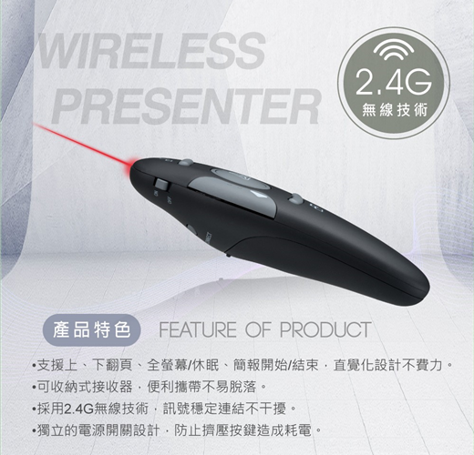 .可收納式接收器,便利攜帶不易脫落。 .採用2.4G無線技術,訊號穩定連結不干擾。
