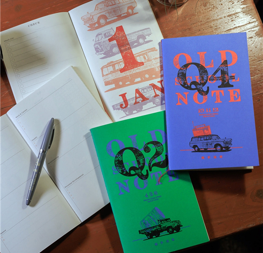 老派手帳呼應日曆「環島」主題及三原色概念,以腳踏車、汽車、飛機等交通工具,代表時光承載的回憶,功能也延續歷年手帳的優點,讓你不只能回味過去,也繼續創造全新的回憶。