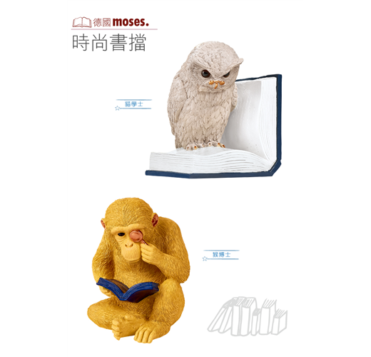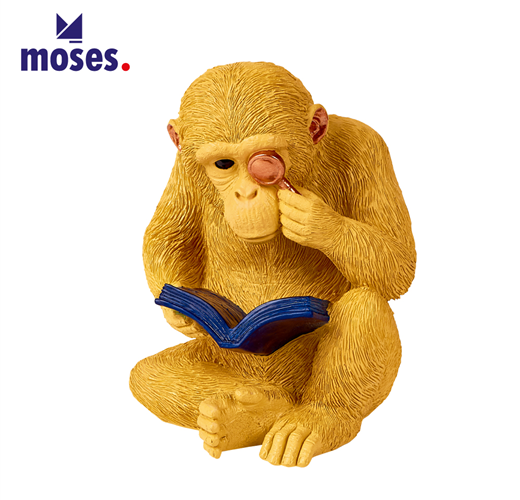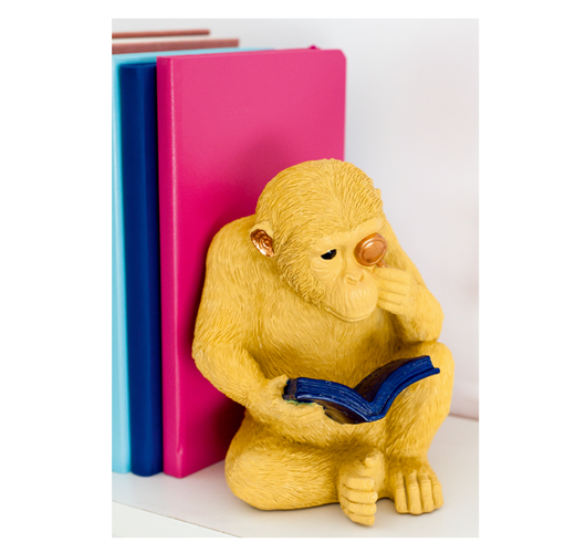 猴博士正沉浸於家中圖書館。造型栩栩如生,1公斤的重量,使它穩如泰山,足以支撐最厚重的書籍,也可當作文鎮或擺飾,為家中增添些許生活美學。