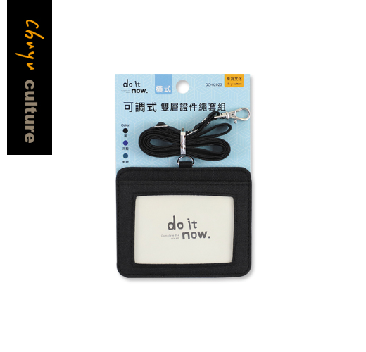 可調式雙層證件繩套組(橫)-黑【珠友文化】