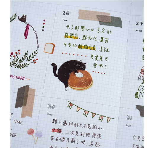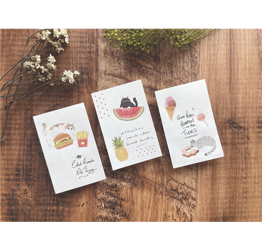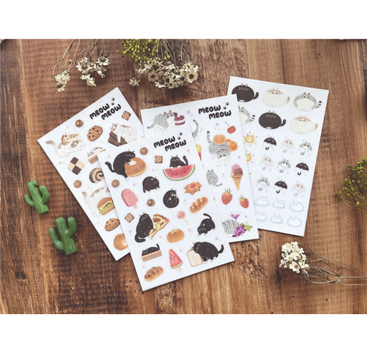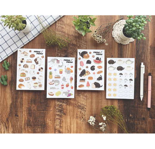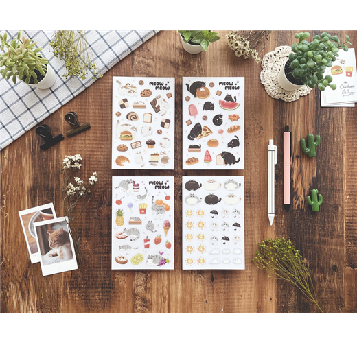 「喵喵感壓貼」有著超多活潑可愛的貓咪圖案,搭配各種美食,裝飾在日誌或筆記本中,就能為感受到特有的療癒效果唷!