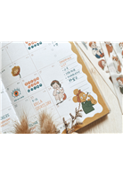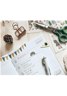 今年的設計主題為小怪獸的自high人生,除了可以在跨頁插畫中看到小怪獸跟他的小伙伴,如何在平淡的生活中自己找尋樂趣外,6個月行事曆的月份標示也設計為Crossword圈字遊戲,為平淡的生活增添一些趣味,無聊時可以玩玩看,每一組都可以圈出12個月份喔!