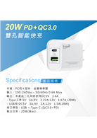 -Type C埠:5V⎓3A;9V⎓2.22A;12V⎓1.67A (20W)