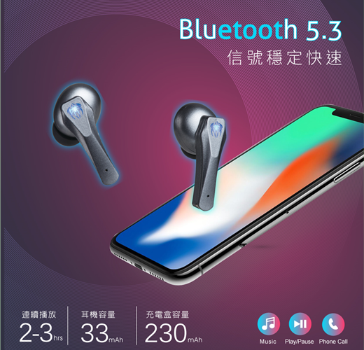 .電池容量:33mAh(耳機); 230mAh(充電盒)