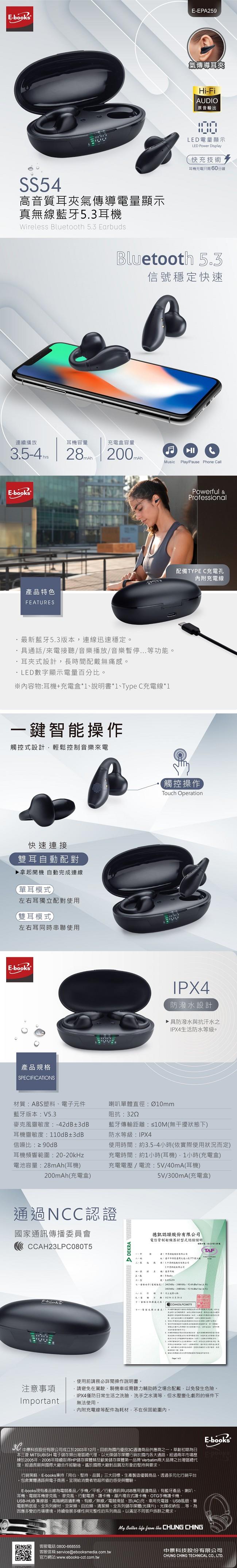 E-books品牌理念,以「用心、堅持、品質」三大經營主軸,秉持高品質的設計概念、並以實惠價格行銷策略,希冀帶給國人平價而超值的商品體驗,符合M型化社會新奢華商品的商品設計潮流,歷時兩年完整的商品行銷與策略規劃,於2008年推出3C週邊系列商品,到目前為止,已超過7000個以上銷售通路據點販售E-books品牌系列商品,並同步行銷於各大電子商務平台,經多年市場粹練,深受消費者喜愛與肯定,建立起品牌與技術兼容最佳品牌的專業形象。