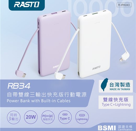 .自帶Type C+Lightning雙充電線,可同時三個裝備輸出