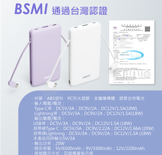 自帶線Lightning:DC5V/3A;DC9V/2A;DC12V/1.5A (18W)