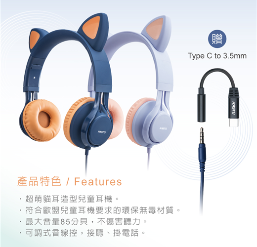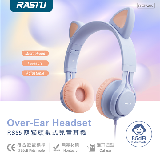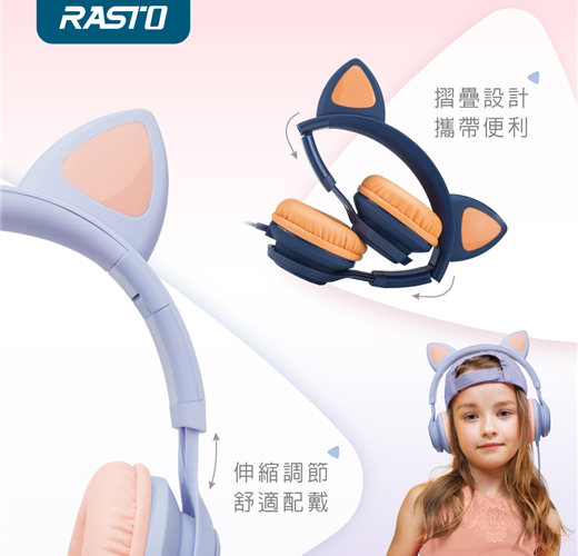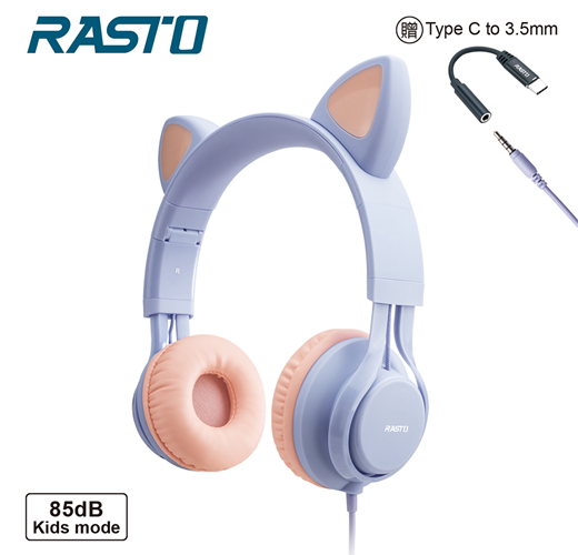 RS55 萌貓頭戴式兒童耳機/紫【RASTO】