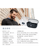 .充電電壓/電流: DC 5V/30mA(耳機); DC 5V/300mA(充電盒)
