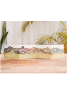 「山的主題一直是我想做的,這次掛曆的圖視角是近景,海報桌曆我選了中遠景做出區隔。畫的時候我用了和商品相同尺寸的紙來畫,畫完之後擺在桌前。非常的遼闊,很開心完成這幅畫,聖稜線是我的目標。」