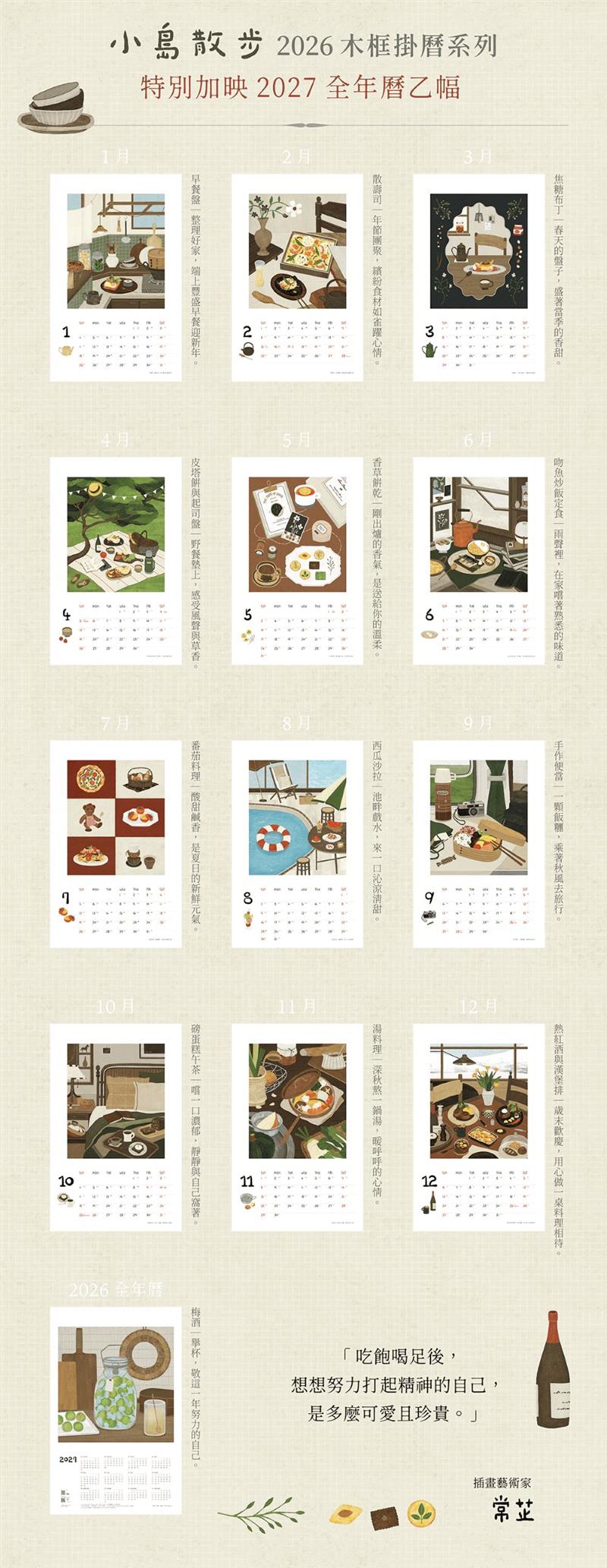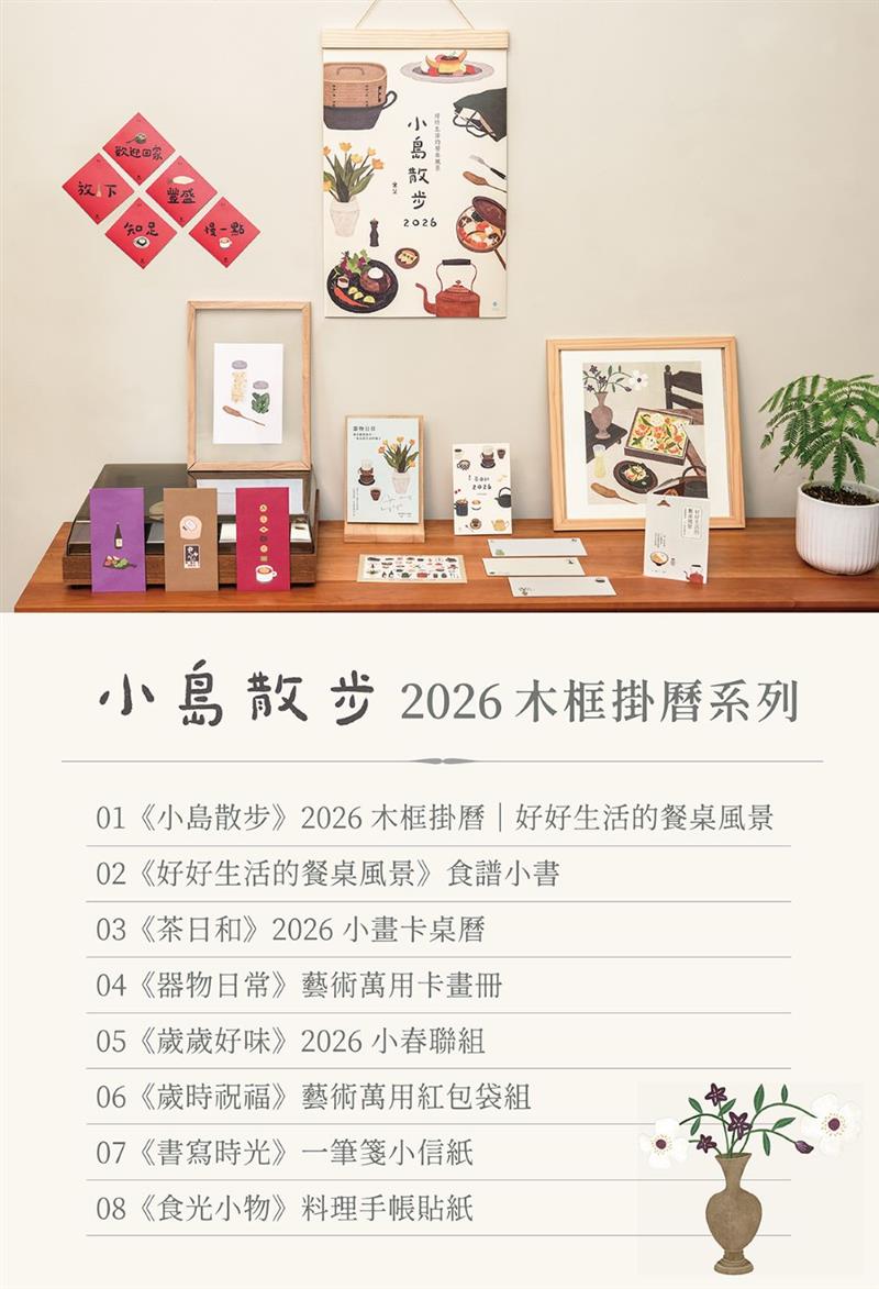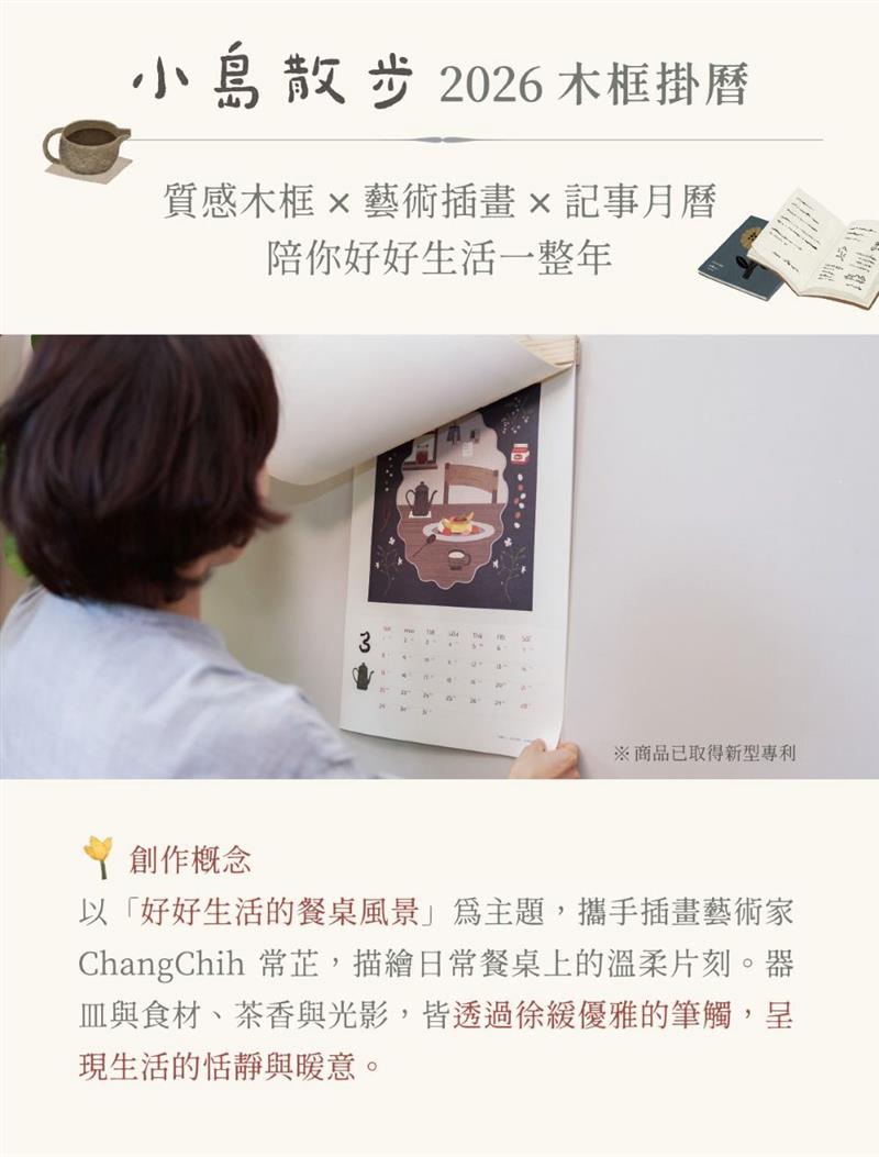 《小島散步》2026木框掛曆|好好生活的餐桌風景
