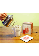 生態綠獻上全新打造咖啡掛耳包,經典正義紅、環保綠特調配方升級,全新包裝,讓美味與善心更能輕盈傳遞。