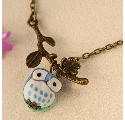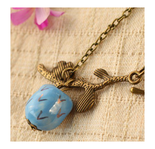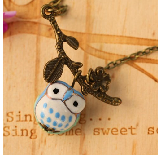 手繪陶貓頭鷹項鍊(藍天藍)‧彩虹森林