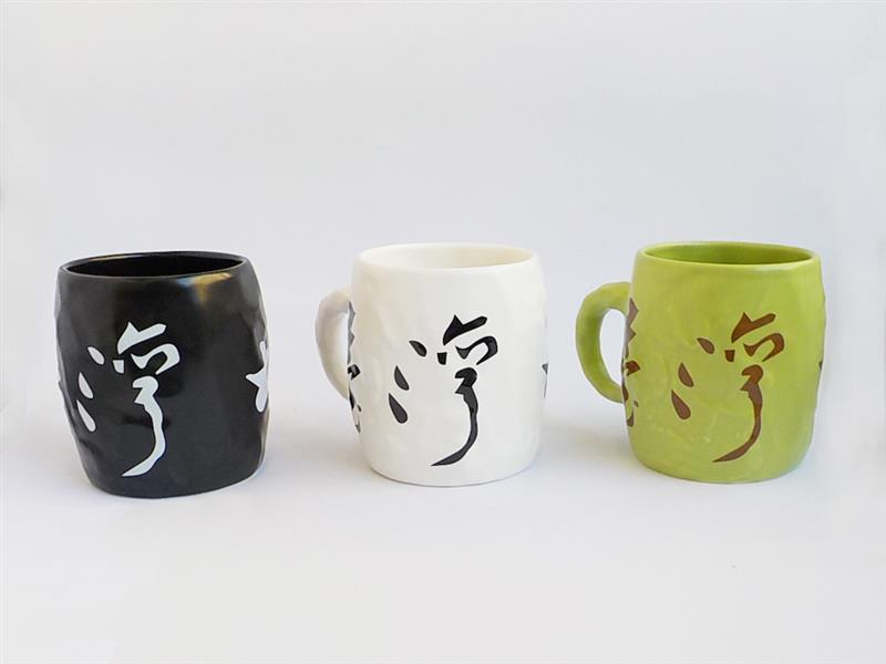 臺靜農老師獨樹一格的書法搭配奶油杯自然不加修飾的線條,從不同角度欣賞都有不一樣的畫面。