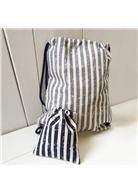 將束口後背包 3x3 井字三折收納,即可放入小收納袋中。每個小收納袋都有與束口後背包相同的花色在袋前,也可當親子收納、情侶收納包。