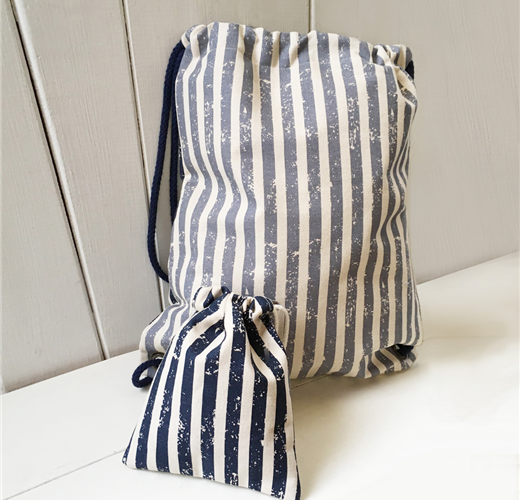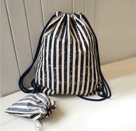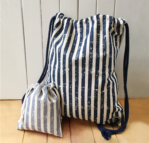 束口後背包+小收納袋 /條紋MEW【WaWu】