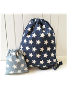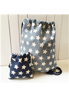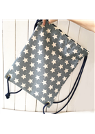 將束口後背包 3x3 井字三折收納,即可放入小收納袋中。每個小收納袋都有與束口後背包相同的花色在袋前,也可當親子收納、情侶收納包。
