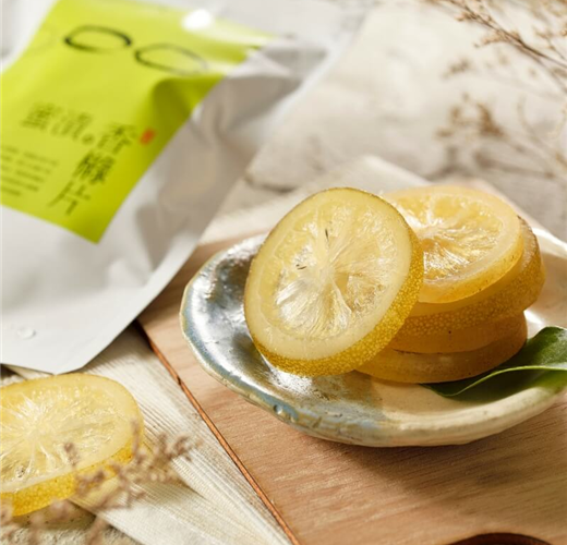 蜜漬香櫞片選用台灣友善栽種香水檸檬,栽種全程不使用農藥及化學肥料。香水檸檬又稱香櫞,果汁含量少但果皮厚實,果實表面佈滿油胞、富含精油,散發香櫞的獨特香氣。手工切片後糖漬,去除苦澀並保留香水檸檬的清新風味,不添加任何人工香料、色素或防腐劑。