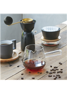 玻璃濾壺以圓弧外型設計,以利旋轉搖晃,使咖啡液均勻混合;中式握把隔熱且符合人體工學。
