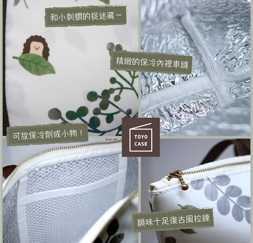 手感圓潤的復古拉鍊,全鋁箔內裡,並附有保冷劑專屬網袋,可有效延長保溫保冷時間,12.5 cm寬的大底設計,無論是放便當盒或是食物,都是款典雅實用的托特袋。