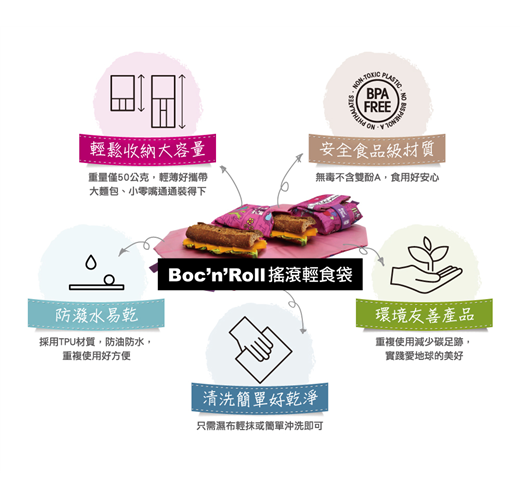 2008年為了增加整體產品的延伸與廣度,開發了減少一次性食物包裝的解決方案:Boc’n’Roll搖滾輕食袋 - 一個可重複使用的麵包袋因應而生。隨後可重複使用及永續的產品相繼開發出來:吃貨零食袋、可變為餐墊的二合一野餐包。