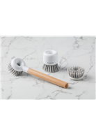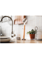 Easy Brush萬用刷的PP刷毛替換式刷頭,適用於木柄加長型及圓刷輕巧型兩系列產品,與傳統的菜瓜布或清潔海綿不同,旋轉即可取下更換新刷頭,柄身可重複使用,減少耗材,降低環境負擔。