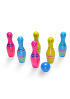 將歐洲傳統撞柱遊戲(Skittles)與現代保齡球結合,以木球撞擊瓶柱,遊戲規則自訂,瓶柱上有趣的表情,就像笑著和孩子一同玩樂。 玩家輪流滾擲木球,擊倒最多球柱的玩家獲勝!