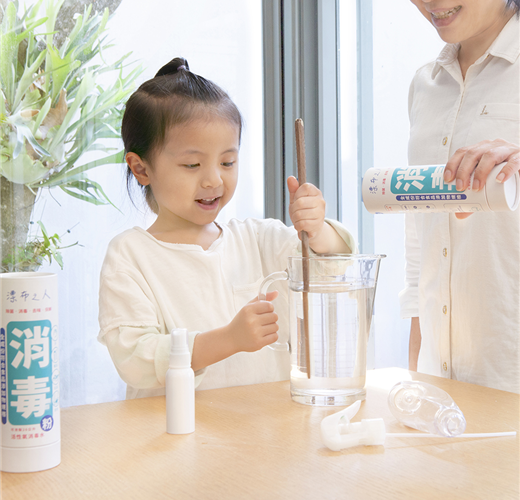 -泡好的活性氧水,靜置讓粉末沉澱,分裝至噴瓶時建議不要將底部粉末倒入,以免噴口堵塞。