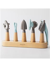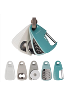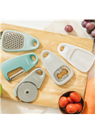 設計理念:功能多樣、方便、快捷,適合現代家庭不同的烹飪需要,削皮、刨絲、切刀、開瓶、磨泥五種功能一次擁有,快速備料好幫手,環扣設計好收納,尺寸輕巧外出攜帶方便,專為現代廚房設計創意巧思。