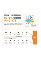 ★市售第一 PM0.075達99.9%過濾效能,更可抗花粉、酒精、油煙、香菸尼古丁、汽機車廢氣