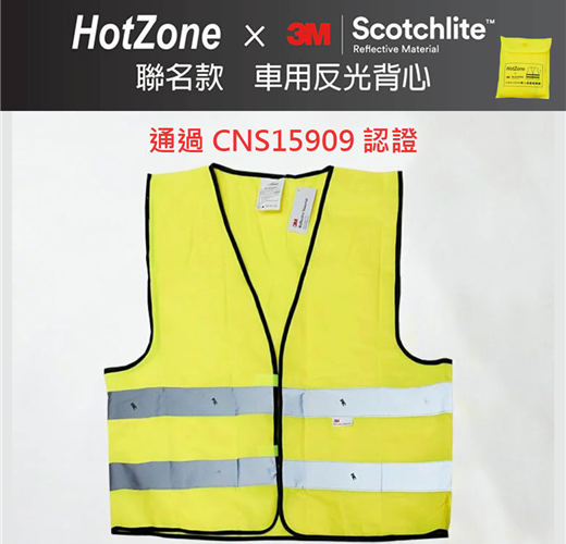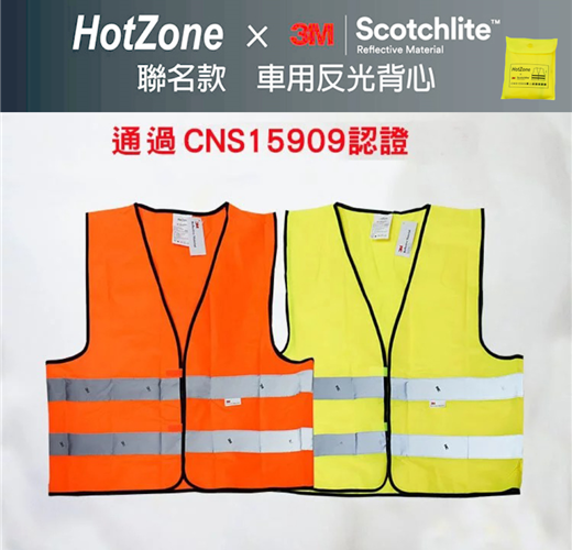 HotZone × 3M CT-15909聯名款車用反光背心,採用3M Scotchlite材質製作,通過CNS15909認證
