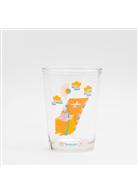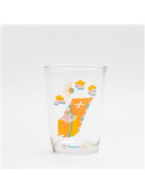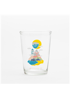 啤酒杯上刻畫著日月潭湖水倒映著湖邊風景的畫面,