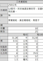 成分:黑葡萄乾、黃金葡萄乾、青提子