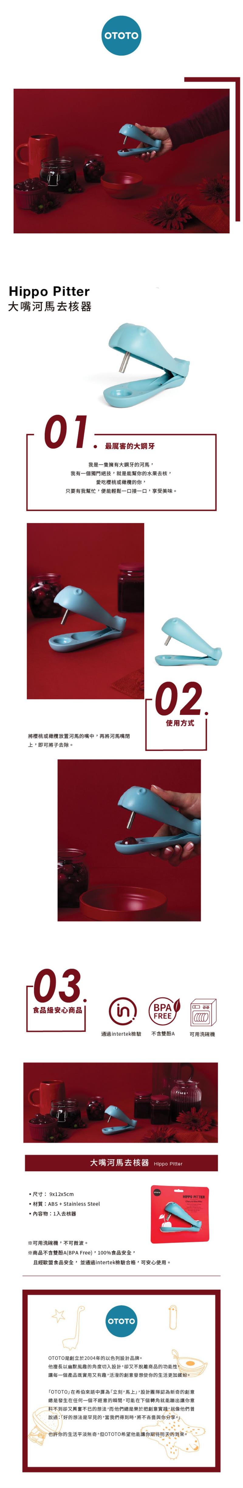我是一隻擁有大鋼牙的河馬,我有一個獨門絕技,就是能幫你的水果去核,愛吃櫻桃或橄欖的你,只要有我幫忙,便能輕鬆一口接一口,享受美味。