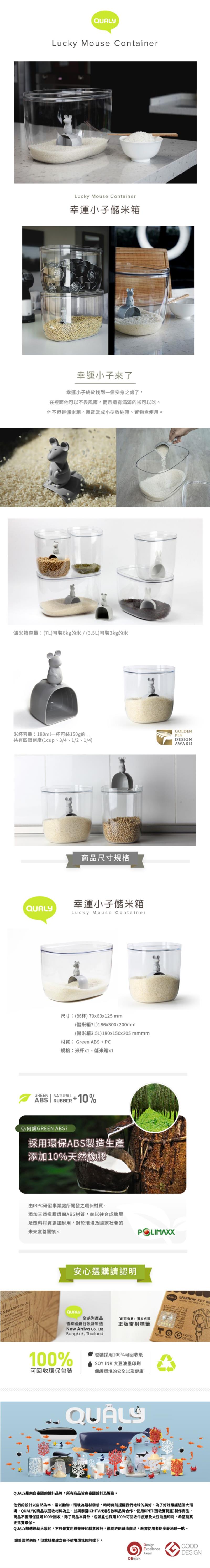 QUALY每年都致力於推出新的設計,於品牌經營上也極盡用心,不只商品設計用盡巧思連產品包裝都細膩精緻,所以獲得大眾相當好的評價。每年都受邀參展世界知名的巴黎Maison et Objet設計展,也受邀展出法蘭克福Ambient消費用品展、紐約禮品展等,並獲得多項設計獎項,相信QUALY於設計界的高知名度指日可待!